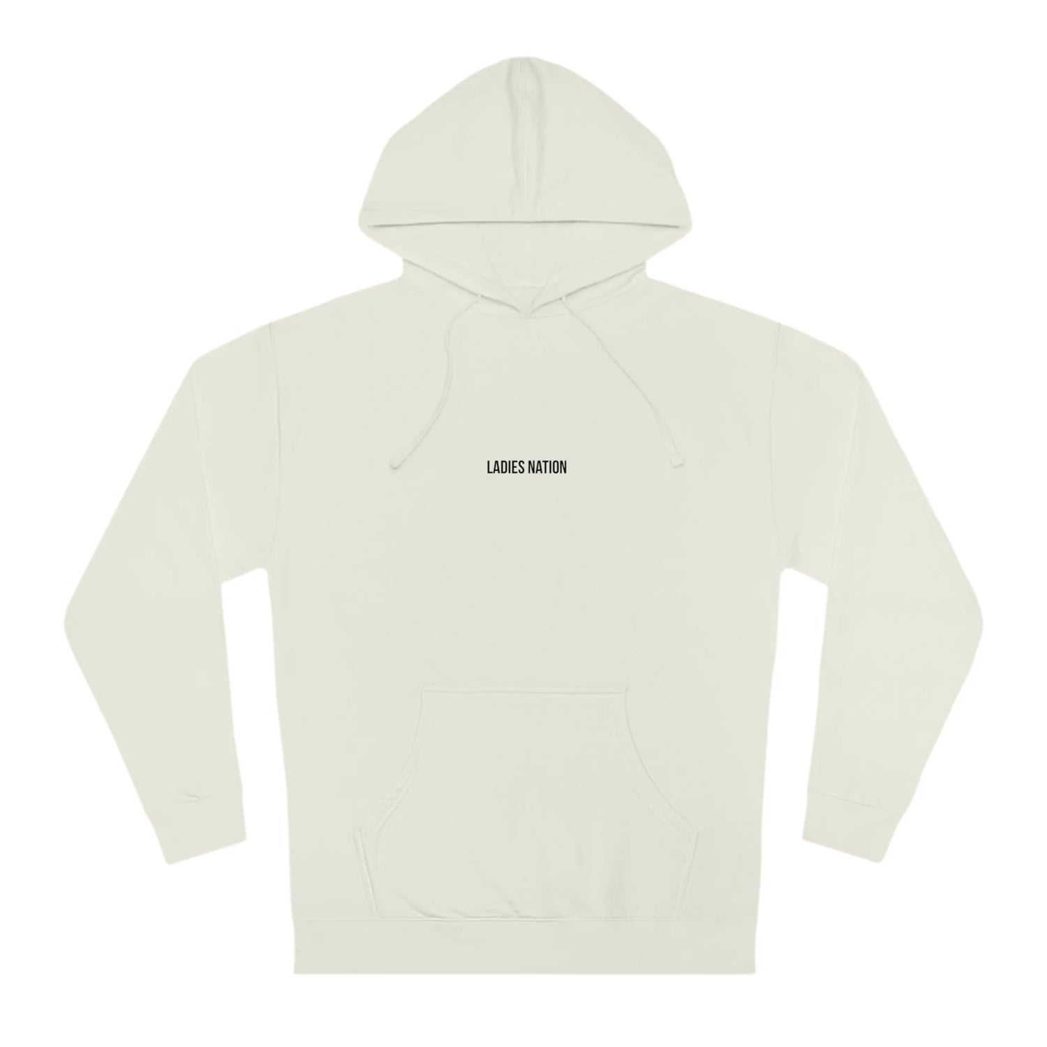 We produce casual wear for 'LADIES NATION,' focusing on comfort and simple branding. Our range includes fleece hoodies and jersey knit t-shirts, both featuring the brand's text graphic and customizable options.
