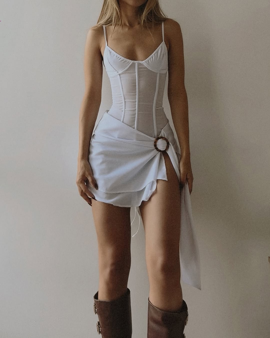 For 'Sign,' we create diverse garments, blending structured and flowing styles with synthetic fabrics. Designs range from streetwear-inspired two-piece sets to detailed corset dresses, targeting a youthful audience. Techniques include precision stitching and boning, with potential enhancements like fabric variations and embellishments.