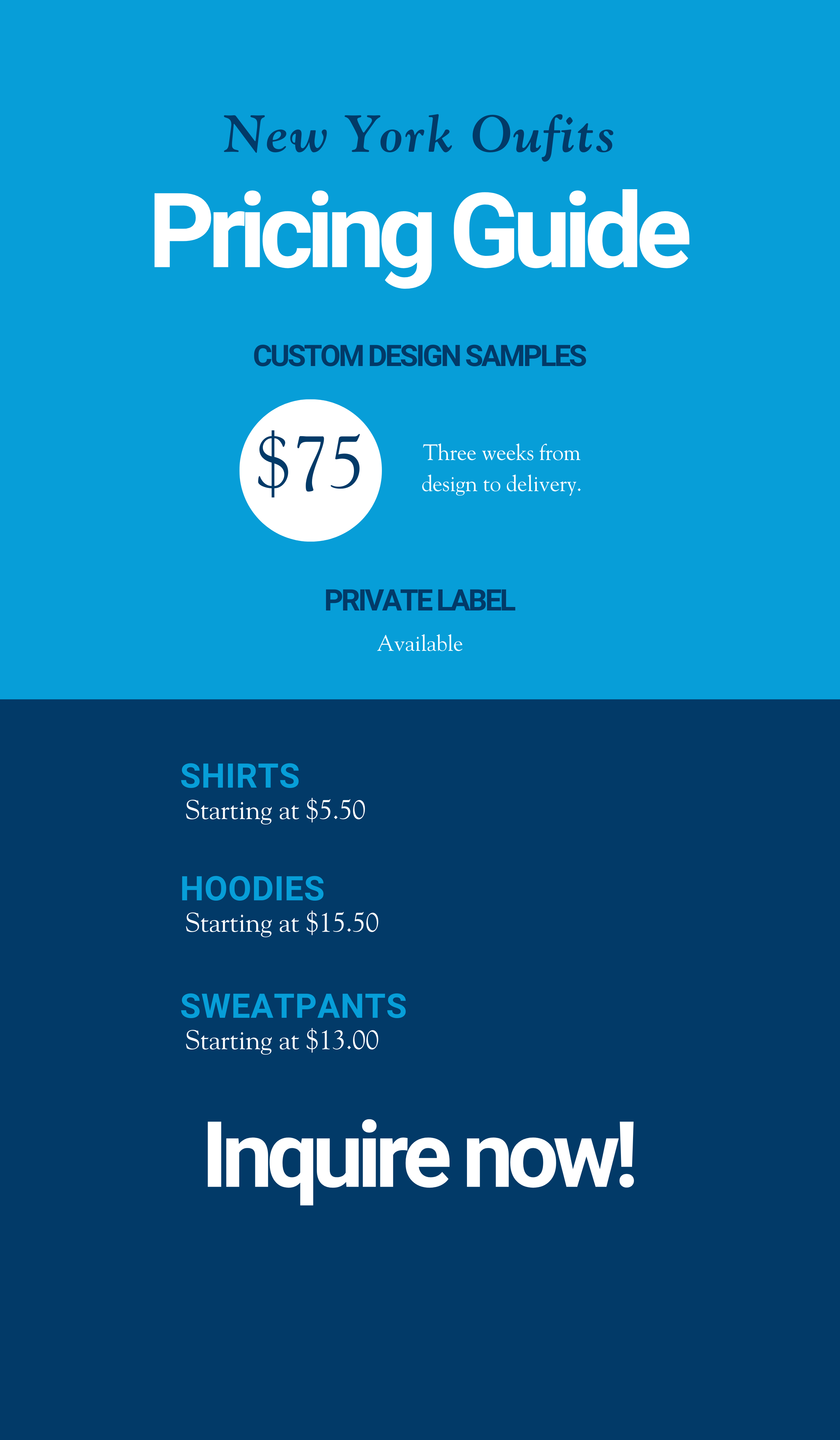 New York Outfits (NYO) is a manufacturing company that specializes in delivering high quality clothing pieces according to the client's needs. We provide services in the design, cutting, tailoring, casual, sports, uniforms, prom jackets and general supplies, printing and embroidery of clothing.